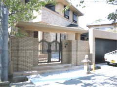 建物に合わせてタイル貼で仕上げた鉄筋コンクリートゲートです。間口の上部は少しR形状にしてオシャレにしています。 |